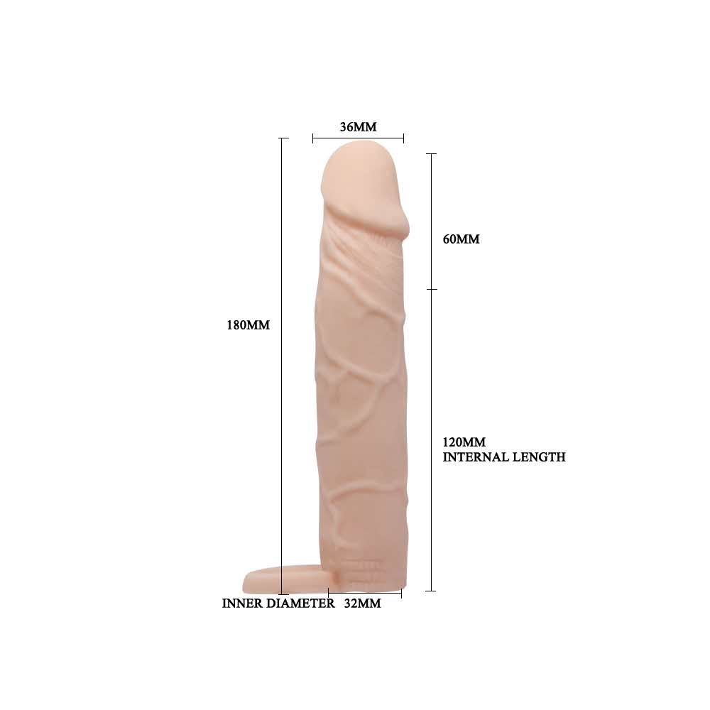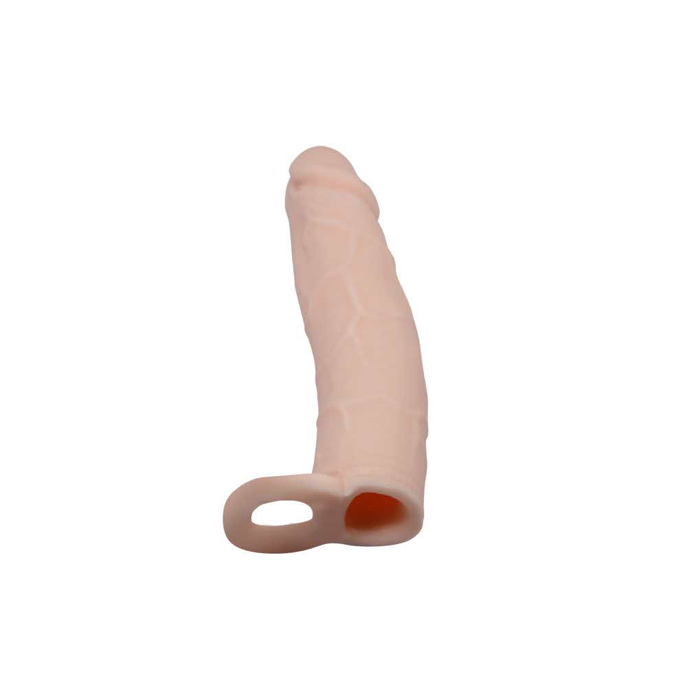 Ten rękaw na penisa jest zaprojektowany tak, aby łatwo nasunąć na twojego penisa i dać ci taki wzrost, jaki chcesz. Ma również wygląd prawdziwego penisa. Fajnie jest mieć osłonę na penisa, dzięki czemu zwiększa długość i obwód, co może być korzystne dla Ciebie i Twojego partnera.