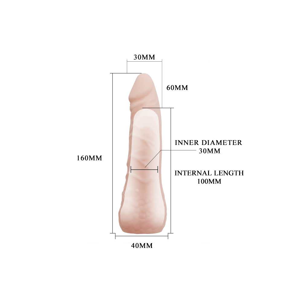 To rozszerzenie penisa zmienia twoją męskość w doskonałą replikę jego penisa! Ten produkt jest pokryty wirtualną teksturą, która naśladuje miękką teksturę prawdziwej skóry, dzięki czemu Ty i Twój partner możecie cieszyć się realistycznymi wrażeniami. Ta nakładka zwiększa długość całego penisa o cale. Ściśnij wydrążoną końcówkę zbiornika przed włożeniem penisa, aby zapewnić dopasowanie ssące, które przylega bezpośrednio do twojego penisa. Możesz nawet przyciąć podstawę przedłużki, aby dostosować idealne dopasowanie.