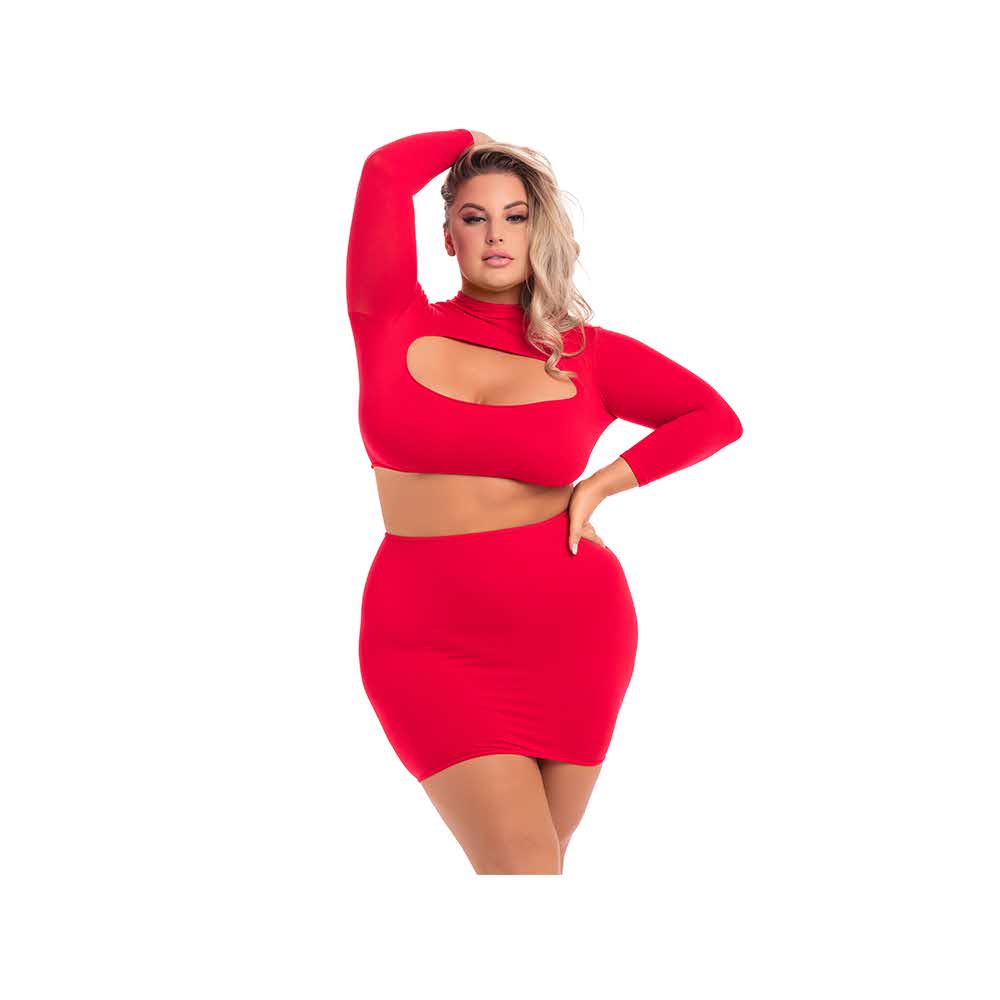 STOP STARE 2PC SKIRT SET RED 3XL 4XL