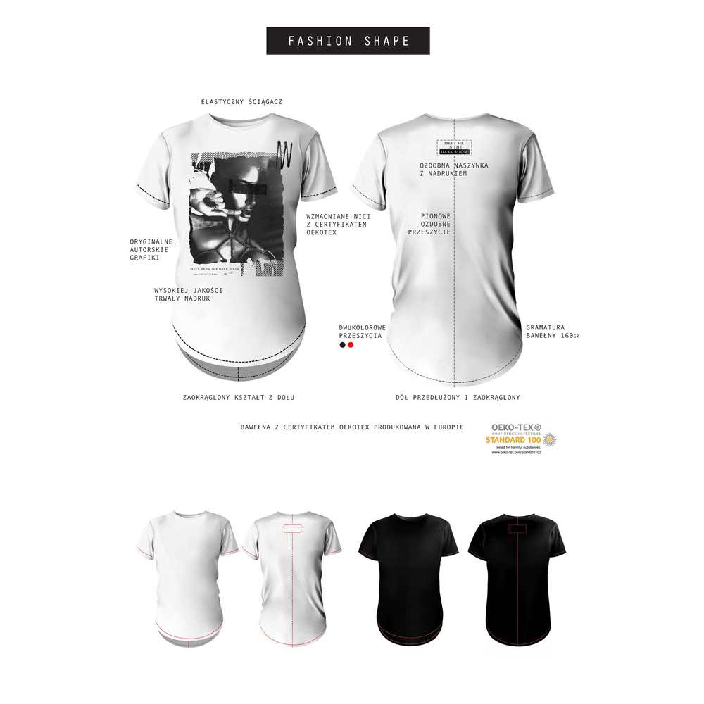 Koszulki są ujęte w 2-u kategoriach: regular i fashion. Osoby gustujące w klasycznych kształtach koszulek, docenią nasze modele w kształcie regularnym. Osoby poszukujące nietypowych rozwiązań docenią w modelach fashion – zaokrąglone kształty u dołu, 2-u kolorowe, ozdobne przeszycia i efektownie ozdobione plecy.