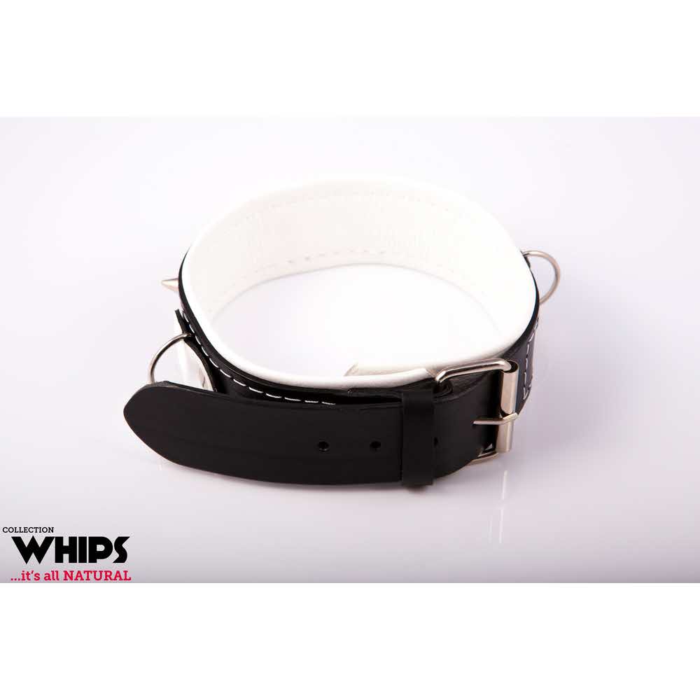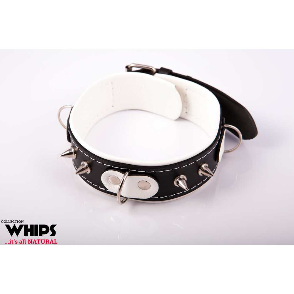 Zestaw: obroża na szyję, z ćwiekami, 3 półkółkami oraz smyczą