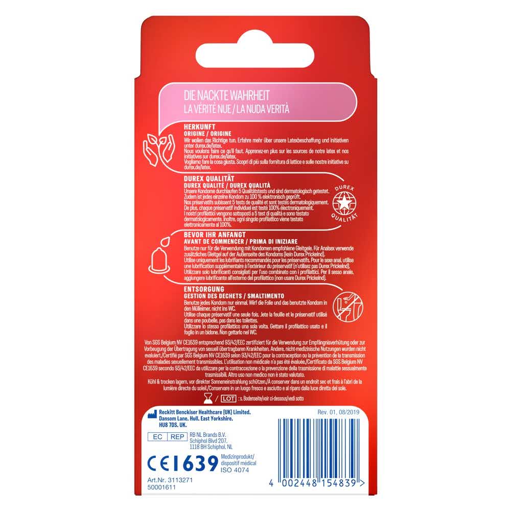 Klasyk wśród prezerwatyw! Przezroczyste prezerwatywy z nawilżoną powłoką i zbiornikiem. Przyjemnie cienka dla intensywnych wrażeń. Idealne dopasowanie zapewnia lepsze dopasowanie i łatwiejsze rozwijanie. 8 kawałków. Lateks z naturalnej gumy. Długość 205 mm, szerokość nominalna 56 mm. Uwaga: Prezerwatywy wykonane z naturalnego lateksu gumowego mogą powodować alergie.