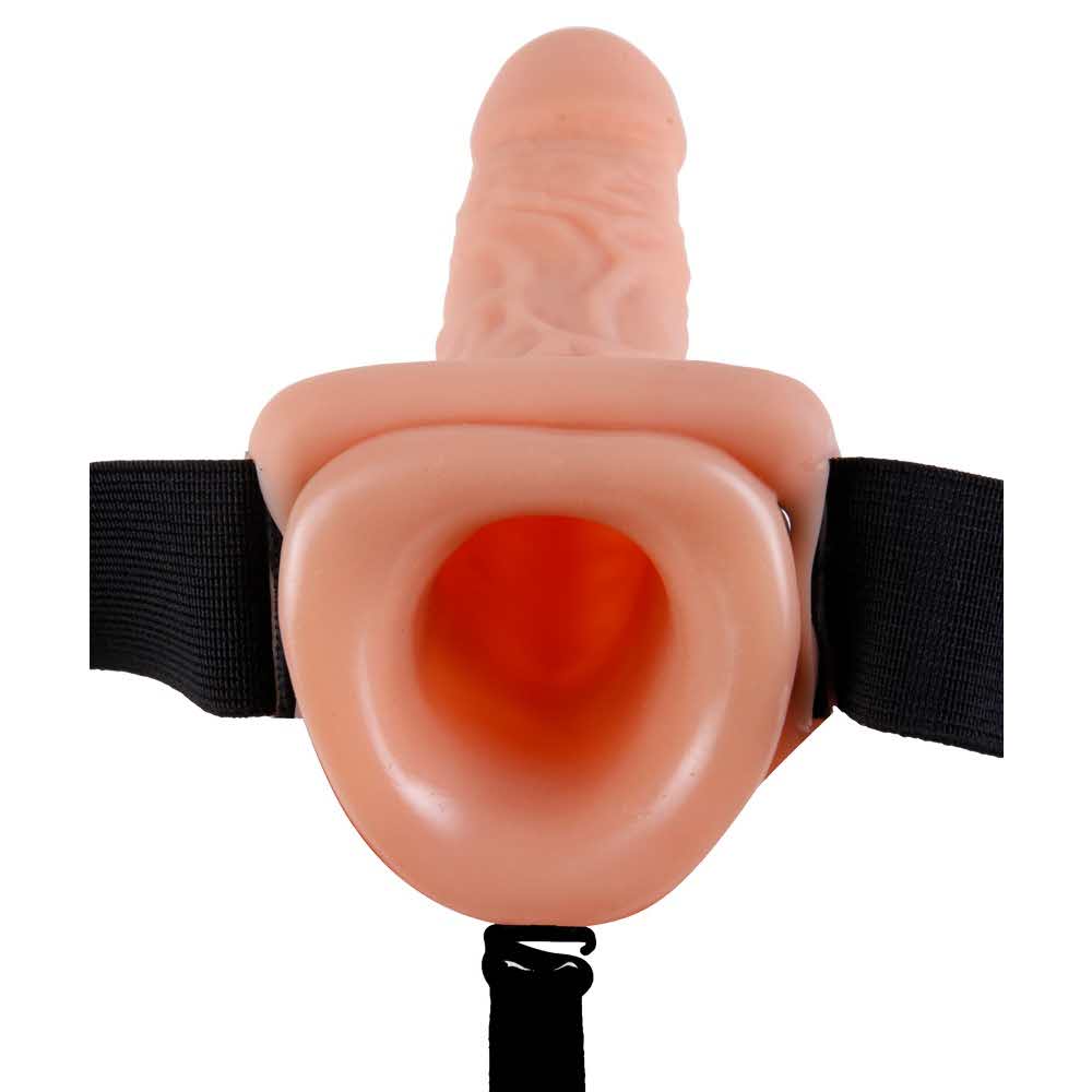 Sztywny i wibrujący przez cały czas! Wydrążony wibrator naturalny z elastycznym strap-onem. Noszone na penisa dla większej długości i obwodu lub dla gorącej sex zabawy pegging. Elastyczne i regulowane paski. Wibracje o wielu prędkościach można kontrolować za pomocą sterownika. (Baterie należy zamawiać oddzielnie: 2 x AA) Długość całkowita 24 cm, głębokość wprowadzenia 22,9 cm, średnica zewnętrzna 4,6 cm. Obwód paska maks. 132 cm. PVC, winyl.