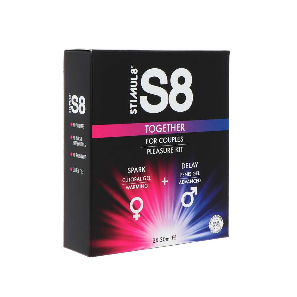 Dziel się zabawą z zestawem S8 Together Szukasz produktów do higieny intymnej, którymi mogą cieszyć się pary? W takim razie pokochasz nowy zestaw S8 Together. Ten zestaw zawiera seksowny S8 Spark Clitoral Gel dla niej i S8 Delay Gel dla niego. W połączeniu w jednej sesji pasji Spark zelektryzuje kobiece zmysły i strefy erogenne, podczas gdy Delay pozwoli mu iść mocniej i dłużej. Idealny duet, Spark i Delay to połączenie premium dla par, które jednocześnie mogą odkrywać swoje pragnienia. Dlatego S8 połączył te dwie formuły w jednym, przyciągającym wzrok zestawie z dużym prezentem.