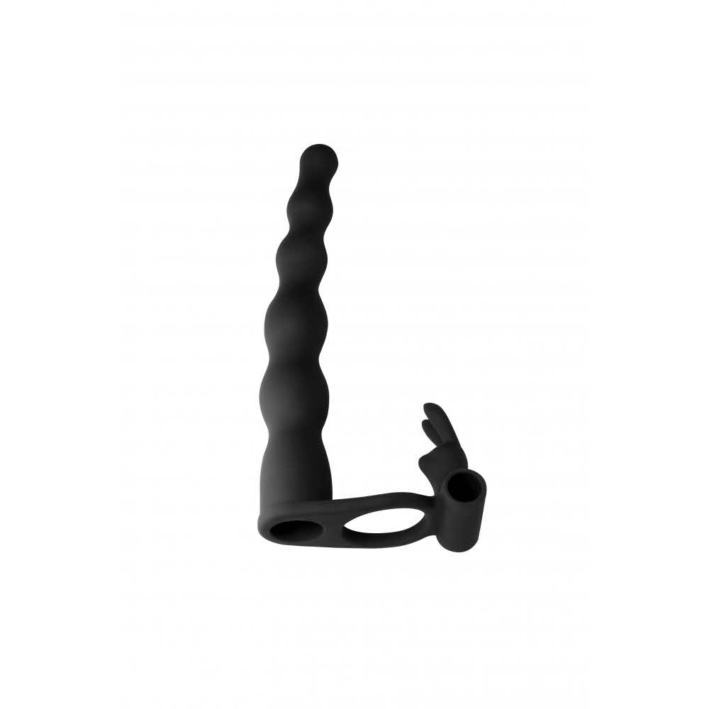 Strap On Jungle Bunny z podwójną penetracją, wykonany z hipoalergicznego silikonu. Ma reliefowy i elastyczny kształt. Mocuje się do podstawy penisa dzięki silikonowemu pierścieniowi. Wewnętrzna średnica pierścionka to 3,1 cm. Pierścionek dobrze się rozciąga i pasuje do każdego rozmiaru. Dodatkową stymulację zapewnia 10-biegowy wibrujący pocisk. Działa na 1 baterię AAA (brak w zestawie). Łatwo zdejmowany z silikonowej końcówki i może być używany samodzielnie. Wibro-pocisk w górnej części do stymulacji łechtaczki zapewni partnerce przyjemne doznania. Zasilany dołączonymi bateriami guzikowymi.