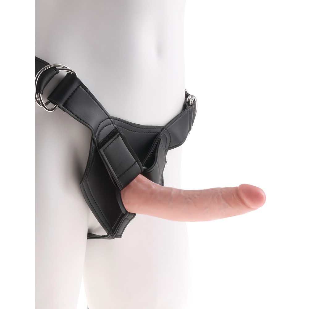 This practical strap-on comes with a realistic, aesthetic dildo that can be removed and used on its own. The pronounced glans and veins are extremely life-like and are perfect for hot pegging action or lesbian love. The harness is adjustable and has 3 rings which means that it is possible to use other dildos or maybe even vibrators with this sturdy harness.