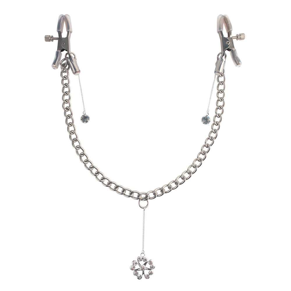 Jeśli fetysz, to szlachetny fetysz! Te zaciski do sutków są wykonane do szczególnie szlachetnych gier fetyszowych! Możesz cieszyć się słodkim bólem w sutkach lub po prostu lekkim uciskiem, ponieważ same zaciski są łatwe do regulacji. Element dekoracyjny na łańcuchu łączącym uzupełnia projekt i zaprasza do ekscytujących gier. Metal, akryl.