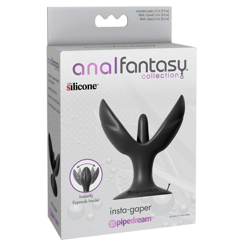 Całkowicie wypełniony odbyt! Insta-Gaper ma przyjemną końcówkę, która otwiera się jak kwiat w odbycie i przyjemnie wypełnia go od wewnątrz. Miękka powierzchnia z łatwością wsuwa się w odbyt, a silna przyssawka umożliwia nawet jazdę bez użycia rąk na tym rozszerzaczu odbytu. Długość wkładki 9,5 cm, szerokość 4 cm (zamknięta) 8,5 cm (otwarta). silikon.
