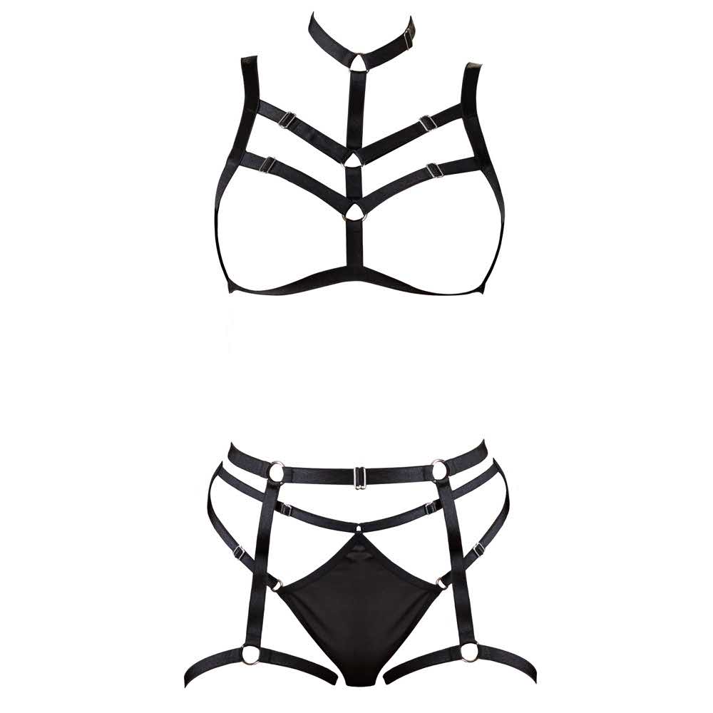 Ozdobne szelki do wszechstronnej zabawy! Ten zestaw uprzęży wygląda elegancko i niegodziwie i daje gorący bondage vibe. Materiał zawiera spandex i ma wiele regulowanych klamer dla idealnego komfortu. 90% poliester, 10% spandex.