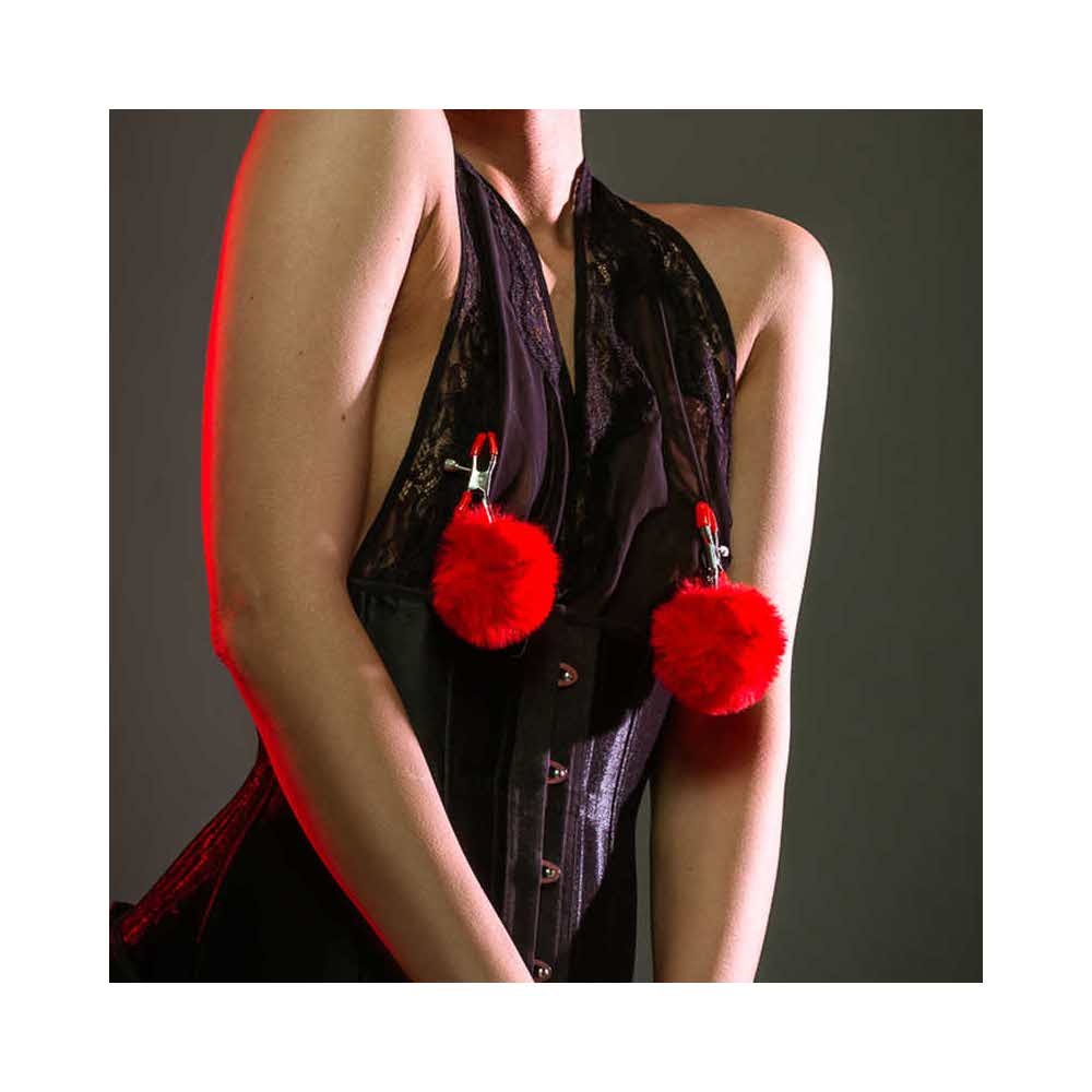 Zaciski na sutki Party Hard Angelic Red mają niesamowity design, przemyślany w najmniejszym szczególe. Wysokiej jakości metalowe klipsy w komplecie z zalotnymi białymi zawieszkami z króliczego ogona. Zawieszki są doskonale wyprofilowane, a ochraniacze na powierzchniach styku z ciałem są dopasowane do dekoru futra. Zabawki są bardzo wygodne i praktyczne – dobrze trzymają sutki, a poza tym możesz dowolnie regulować intensywność ucisku. W tym celu dostępne są małe śruby, które obracając, można łatwo wyregulować zaciski, aby uzyskać wrażenie pożądanej ostrości. Rozmiar jest uniwersalny.