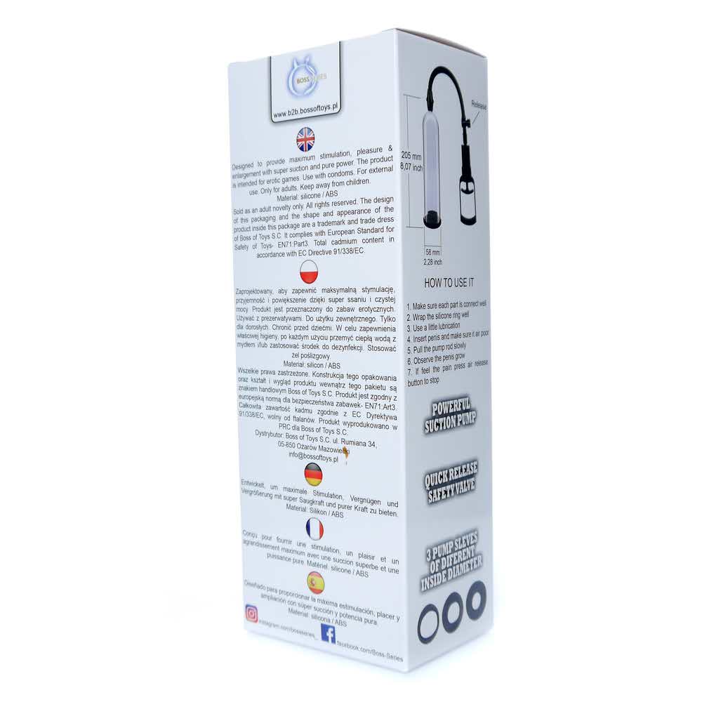 Pompa próżniowa przeznaczona dla mężczyzn, którzy szukają nowych możliwości. Regularne stosowanie powoduje wzrost rozmiarów członka i wzmocnienie erekcji. Wysoka jakość materiałów użytych do produkcji pompy sprawi, że zastosowanie produktu będzie przyjemne, bezpieczne i długotrwałe. Urządzenie jest wyposażone w wydajną pompę.