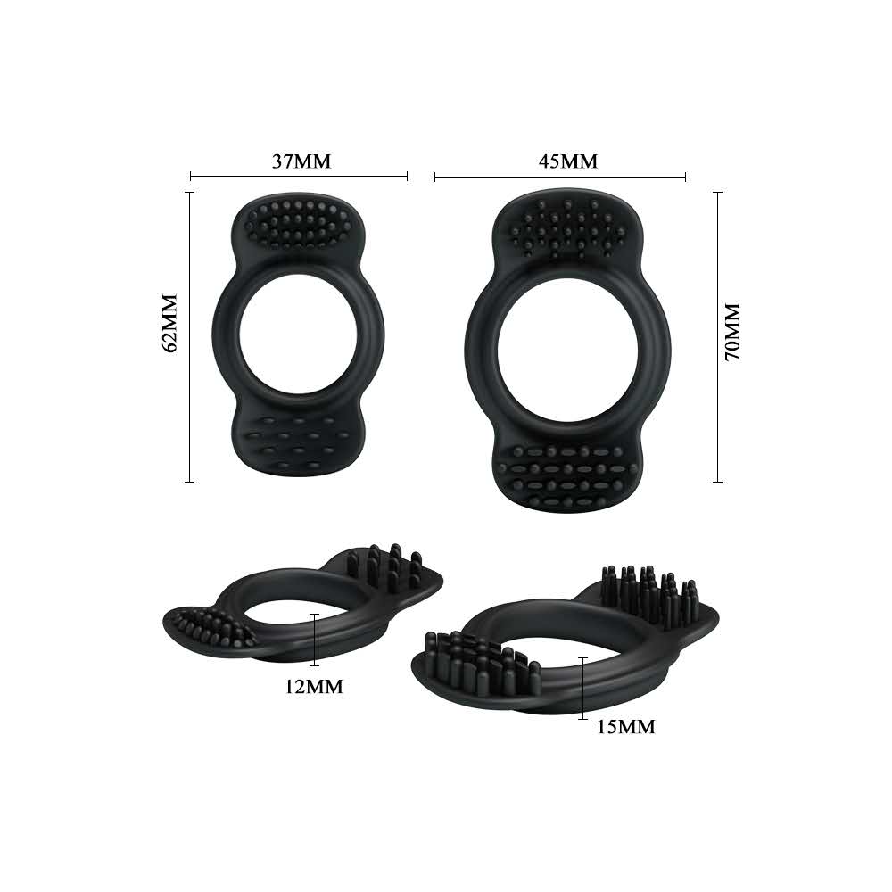 Spójrz na część i daj jej to, czego chce, dzięki temu fantastycznemu zestawowi czarnych pierścieni na penisa. Dwa różne wzory w każdym opakowaniu i bardzo rozciągliwe. Noś pojedynczo lub wszystkie razem, aby uzyskać maksymalną wydajność. Wykonany z silikonu, który jest bezpieczny dla skóry, ponieważ nie zawiera lateksu ani ftalanów. Wysokiej jakości pierścienie na penisa zapewniające mocne i długotrwałe erekcje – ten zestaw przetrwa lata.