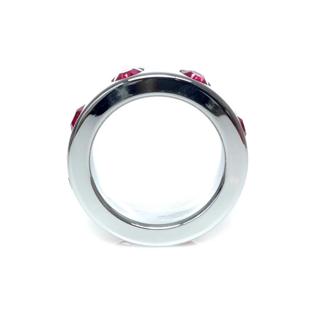 Pierścień Metal Cock Ring with Pink Diamonds Medium