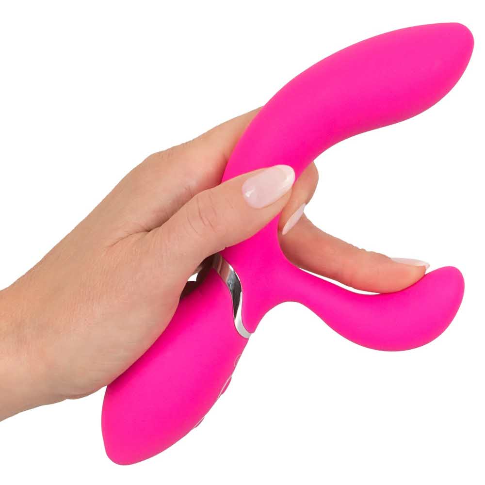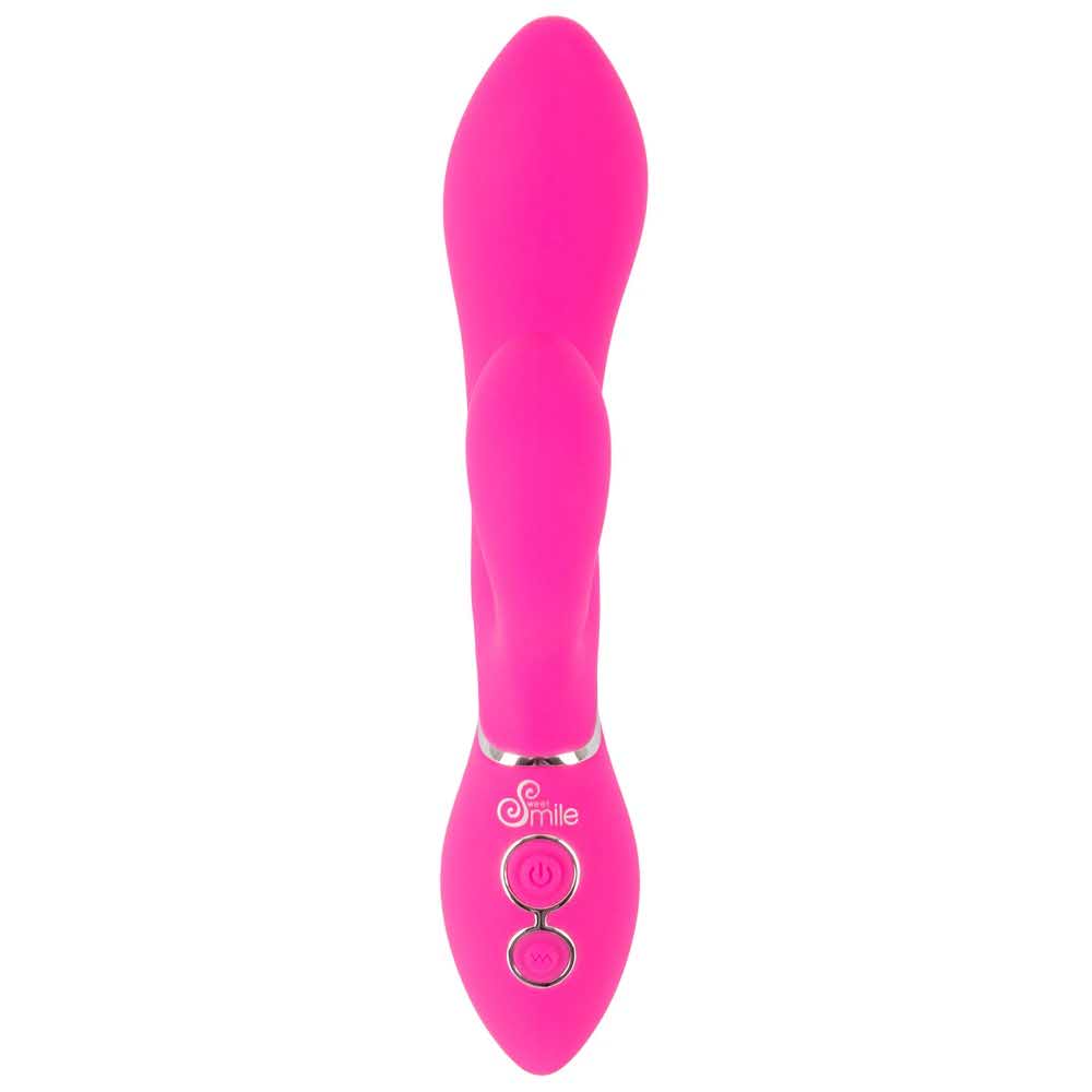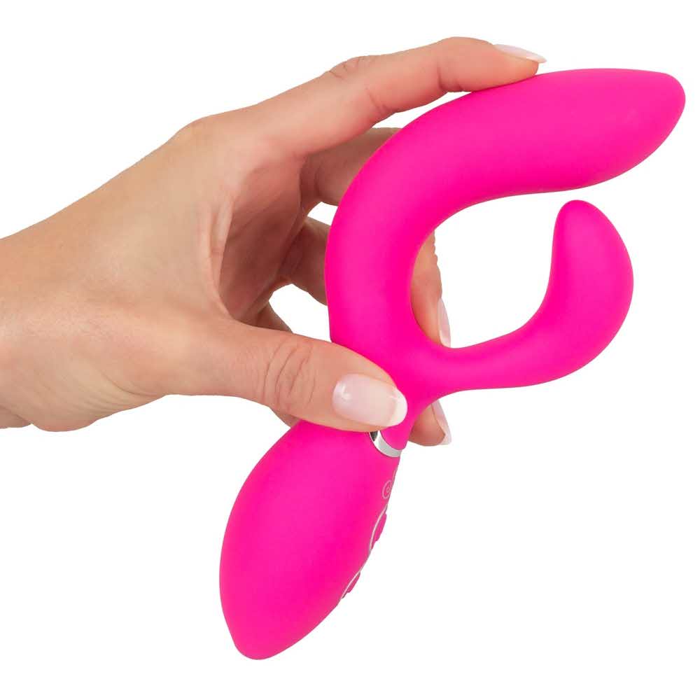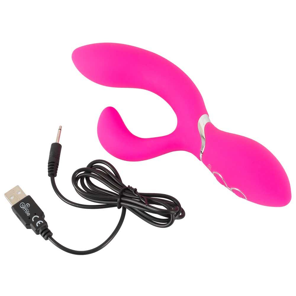 Wyginany i elastyczny dla podwójnej przyjemności! Optymalnie zakrzywiony wibrator Bendable Rabbit Vibrator marki Sweet Smile ze stymulatorem łechtaczki do jednoczesnej stymulacji pochwy i łechtaczki. Niewiarygodnie elastyczne, dzięki czemu kontakt z punktem G i łechtaczką jest zawsze gwarantowany. 2 silniki – po jednym w każdym ramieniu – zapewniają 10 zróżnicowanych trybów wibracji, którymi można wygodnie sterować za pomocą przycisku. Wibrator wykonany jest na całym obwodzie z miękkiego silikonowego materiału i rozpieszcza bardzo przyjemnym uczuciem skóry. Ponieważ wibrator jest wodoodporny, nic nie stoi na przeszkodzie, aby czerpać przyjemność z wibracji nawet pod wodą. Możliwość ładowania – w zestawie kabel USB do ładowania. Długość całkowita 19,8 cm. Długość wkładki 10,2 cm. średnica 2 cm do 3,7 cm. Waga 146 g. Silikon, PU, ABS.