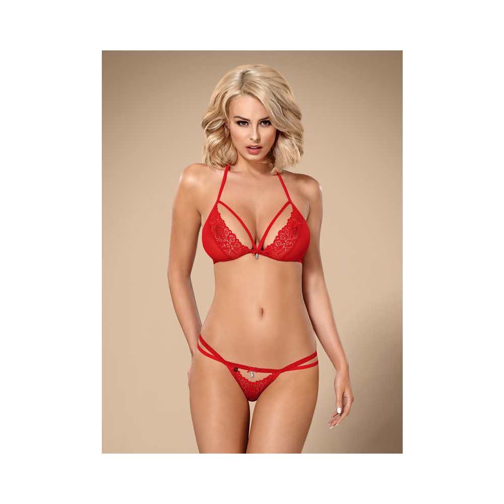Zobacz, co dla Ciebie przygotowaliśmy! Niesamowicie seksowny komplet, który zdobi ciało kuszącymi gumeczkami i świetnie podkreśla kształty. Intensywna czerwień jeszcze bardziej podkręca jego gorący temperament! Chcesz go wypróbować? Będziesz wyglądać… fenomenalnie!