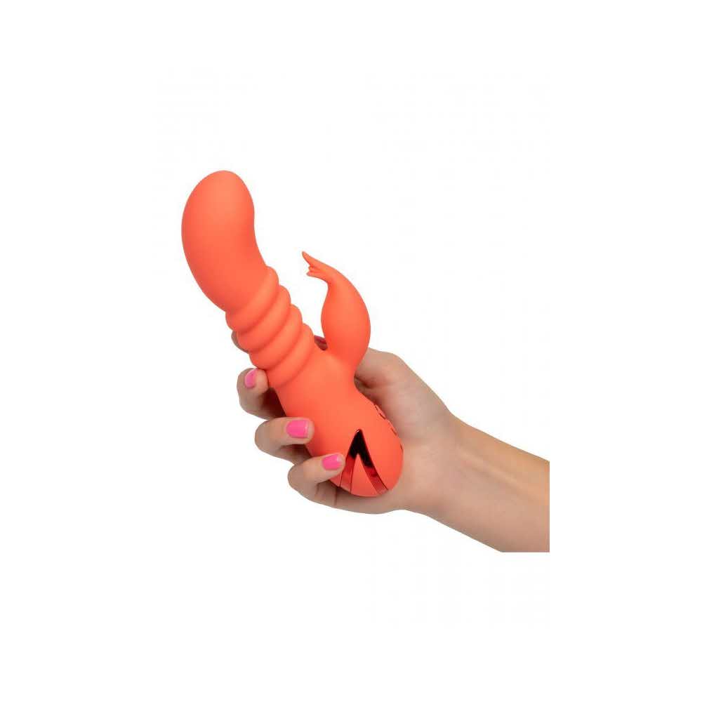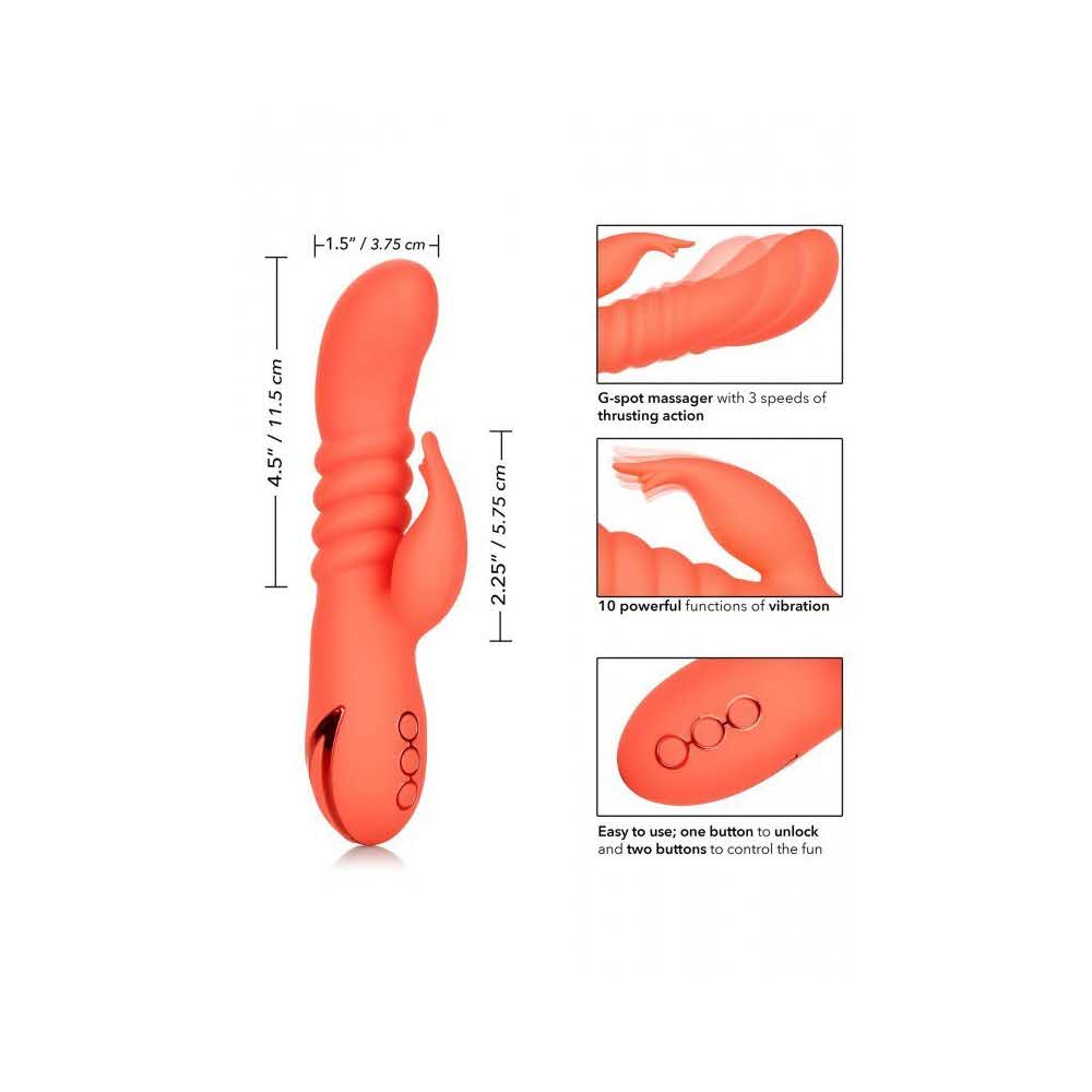 Zabawna kolekcja California Dreaming ™ ożywia luksusowe fantazje dzięki orgazmowi Cutie z hrabstwa Orange. Ergonomicznie zaprojektowany masażer jest gotowy, aby ponownie przeżyć Twoje ulubione letnie fantazje, dzięki 10 potężnym funkcjom wibracji i 3 prędkościom wstrząsania kolanami. Podczas gdy migotliwy stymulator dokucza, żebrowany wałek i zakrzywiona końcówka zapewniają głębokie pchanie, stymulację punktu g. Zakrzywiona końcówka ma potężną akcję do przodu i do tyłu, dzięki czemu zawsze trafiasz we właściwe miejsce. Łaskoczący drażniący wykorzystuje potężny silnik wibracyjny, aby zapewnić błogą stymulację zewnętrzną. Elastyczny zwiastun może być używany niezależnie od funkcji ciągu, aby w pełni dostosować przyjemność. Podłącz dostarczony kabel USB do samonaprawiającego się portu do ładowania, aby naładować swoją pasję w 2,5 godziny. Poczuj dreszczyk do 150 minut wibrującej przyjemności. Aby bez wysiłku kontrolować stymulację, elegancki 3-przyciskowy panel sterowania umożliwia niezależne sterowanie opcjami wibracji i pchania. Zaawansowany technologicznie układ pamięci zapamiętuje, jak Ci się podoba, wznawia odtwarzanie na ostatniej użytej funkcji
