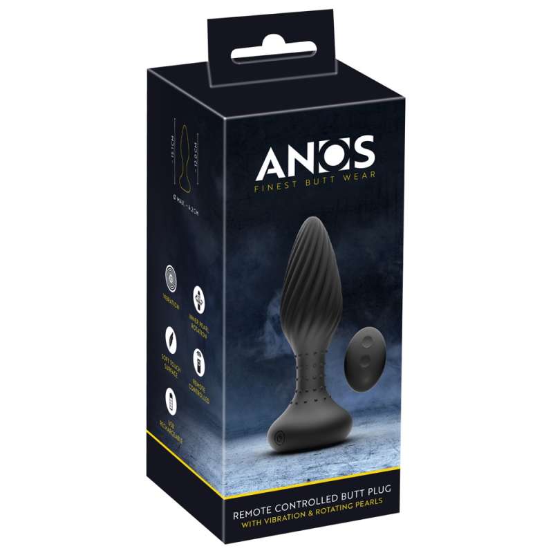 Korek analny marki Anos z wibracjami o charakterystycznym kształcie spirali do intensywnego masażu analnego. W dolnej części korka umieszczone zostały koraliki masujące, które stymulują anusa w bardzo ukierunkowany i intensywny sposób. Pod podstawą znajduje się małe okrągłe lusterko w kolorze złotym, które zdobi anusa podczas noszenia korka.