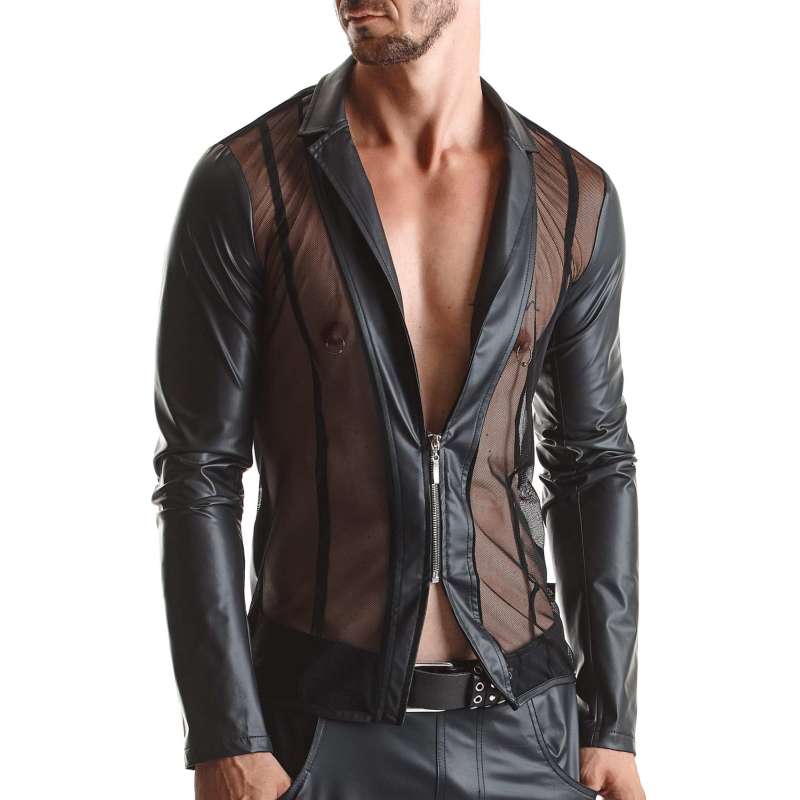 Wyraź siebie i swoje doskonałe, indywidualne poczucie smaku. Marynarka RMDaniele001 spełni Twoje wyrafinowane oczekiwania. Z przodu efektownie eksponuje widoczną klatkę piersiową. Krótki, srebrny ekspres dodaje szyku, pięknie współgra z licznymi pionowymi liniami łączącymi czarną siateczkę i czarny wetlook. Suwaki ozdobione grawerowanym logo RFP. Uwagę zwracają także charakterystyczne, wąskie klapy. To klasyczny detal, wkomponowany w nowoczesny wygląd marynarki. Dodatkowo krój typu Slim-Fit wraz z pionowymi liniami z przodu fantastycznie wyszczupla sylwetkę. Czerwone, ozdobne przeszycia oraz czerwona metka z Alcantary z logo RFP, podkreślają unikalność marynarki.