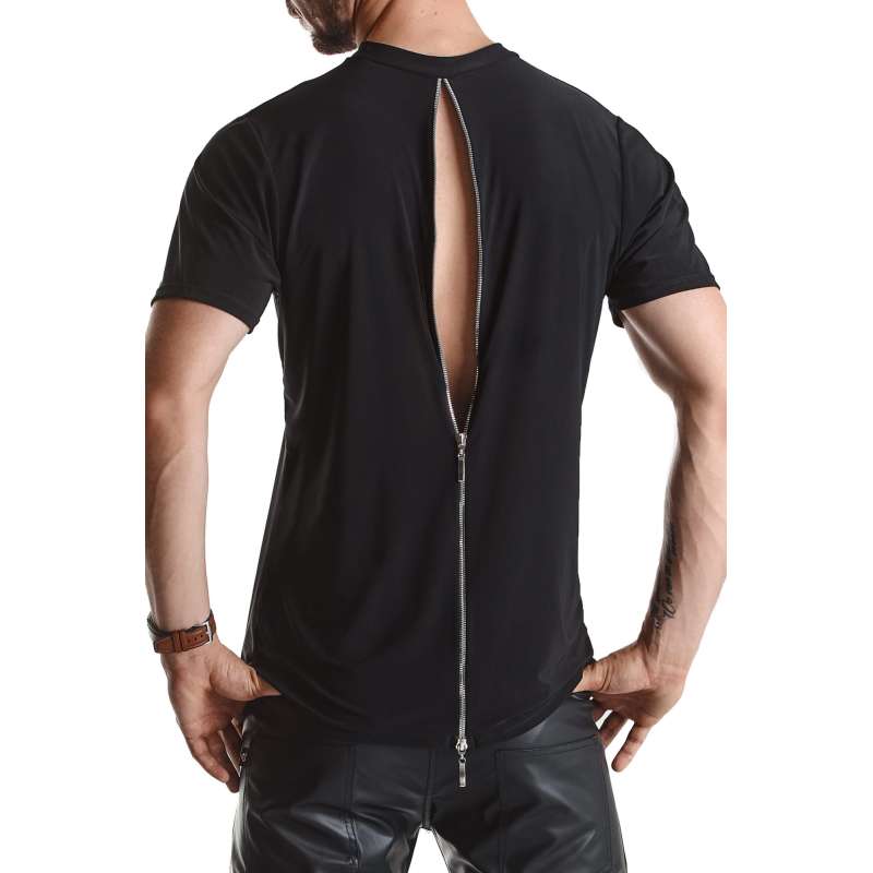 Przyjemna w dotyku koszulka z czarnego, elastycznego materiału. Wzór bardzo przewrotny i zaskakujący. Z przodu robi wrażenie klasycznej koszulki, jednakże z tyłu zaczynają się dziać przyjemne rzeczy. Na całej długości pleców znajduje się długi, ozdobny ekspres w kolorze srebrnym. Posiada suwaki z logo RFP. Można go odpiąć zarówno z dołu jak i z góry. Po odpięciu – wystarczy użyć wyobraźni, aby dobrze to rozwiązanie wykorzystać podczas wspólnych zabaw. Doskonała także jako koszulka do codziennych stylizacji.