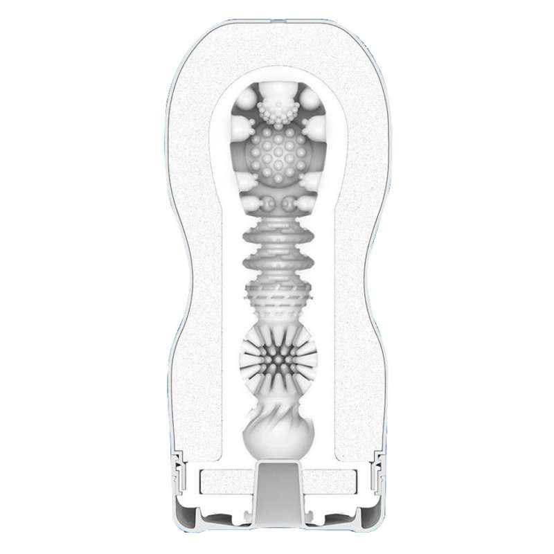 Masturbator jest gotowy do natychmiastowego użytku. Po miękkim wejściu penis jest od razu pokryty dużą ilością lubrykantu Premium, co oznacza, że nie jest potrzebny dodatkowy lubrykant. Różne tekstury wewnątrz o różnej średnicy bardzo intensywnie masują penisa. Air Flow System z komorami powietrznymi zapewnia bardzo ciasne uczucie. Innowacyjny otwór próżniowy na końcu masturbatora zapewnia wspaniałe odczucia ssania. Po zdjęciu naklejki z otworu próżniowego można palcem zakryć lub odsłonić otwór (w zależności od preferencji osoby, która go używa).