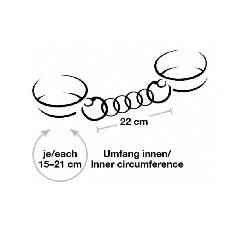 Klasyka w szlachetnym, stylowym wydaniu! Solidne, wysokiej jakości kajdanki Bad Kitty o stylowym wyglądzie skóry z łańcuszkiem łączącym i metalowymi elementami w kolorze różowego złota. Mankiety od wewnątrz wyłożone miękkim pluszem, każdy z nich posiada kółeczko do przypięcia dołączonego łańcuszka łączącego karabinek. Każda regulowana w obwodzie od 15 cm do 21 cm za pomocą zapięcia na klamrę. Ĺańcuch łączący z 2 karabinkami o długości 22 cm. Poliuretan, metal wewnątrz 100% poliester.