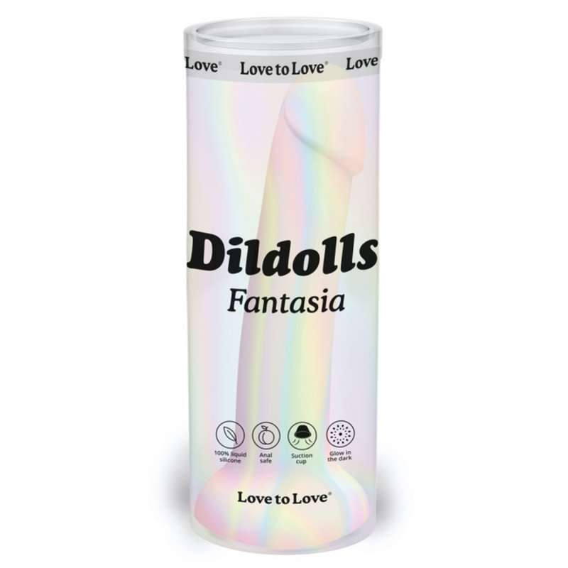 Jedna z najbardziej stylowych serii silikonowych dilów, DilDolls by Love to Love, każdy z nich został wykonany tak, by sprawiał taką samą przyjemność, a jednocześnie był zupełnie wyjątkowy. Oszałamiająca w świetle i w ciemności, Fantasia zachwyca kolorowymi pastelowymi smugami i świecącym w ciemności fosforyzującym płynnym silikonem o jedwabistym dotyku i ergonomicznie zakrzywionym kształcie, który zapewnia wygodne wkładanie.