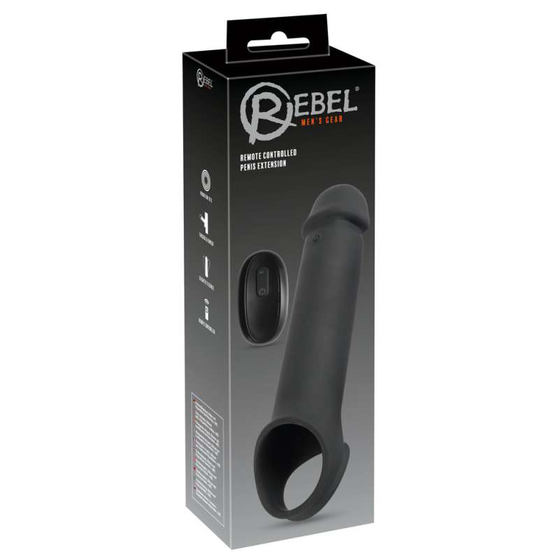 Wydłuża penisa o 8cm i wprawia go w drgania! Ta rozciągliwa osłona penisa Remote Controlled Penis Extension by Rebel z przyjazną dla skóry teksturą soft touch przynosi penisa w najlepszej formie dla wypełnienia chwil przyjemności, a solidna wyściełana żołądź wydłuża go nawet o 8 cm. Ściśle przylegająca, podtrzymująca erekcję osłona jest po prostu nasuwana na członka, a dzięki pierścieniowi na jądra zapewnia mocne, wygodne dopasowanie bez zsuwania się. 10 wszechstronnych trybów wibracji może być wygodnie sterowanych za pomocą bezprzewodowego pilota – nawet przez Twojego partnera dzięki zasięgowi do 12 metrów. Ĺadowalny – zawiera kabel USB do ładowania i baterię (27A) do pilota. Całkowita długość pochewki 25 cm, długość wkładki 19 cm, głębokość wkładki dla penisa 12 cm średnica zewnętrzna 3,7 cm do 4,8 cm, średnica wewnętrzna 3,8 cm, pierścień na jądra średnica 4,5 cm, wszystkie rozciągliwe. 189 g. Silikon, PU, ABS.