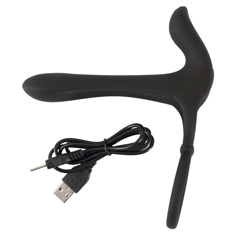 Za wspólne klimaty! Couple’s Vibrator marki Black Velvets to pierścień na penisa/jądra z wibratorem i wibro stymulatorem łechtaczki. Pierścień na penisa i jądra są złożone tak, że wibrator zagnieżdża się na górze penisa. Dzięki temu on może sprawić jej przyjemność grubszym penisem podczas seksu, a sam czuje rozkoszną ciasnotę. I oboje czują wibracje. Dodatkowo pierścień na penisa podtrzymuje jego erekcję przez długi czas dzięki efektowi zastoju krwi, pierścień na jądra zapewnia pewny i bezpieczny chwyt, a stymulator łechtaczki o strukturze pobudzającej pieści jej gorący punkt bezpośrednio mrowiącymi wibracjami. 2 silniki zapewniają 20 zróżnicowanych trybów wibracji, które można wygodnie kontrolować bezpośrednio na zabawce za pomocą jednego przycisku. Nawet w/pod wodą, ponieważ Para Vibrator jest wodoodporny! Wysokiej jakości materiał silikonowy o fakturze soft touch zapewnia bardzo przyjemne uczucie na skórze obojga partnerów. Możliwość ładowania – w zestawie kabel USB do ładowania. Długość całkowita 14 cm, długość wkładki 11 cm, średnica 1,3 cm do 3,2 cm pierścień na penisa średnica 3,2 cm, pierścień na jądra średnica 4,5 cm, oba rozszerzalne. Waga 92 g. Silikon, PU.