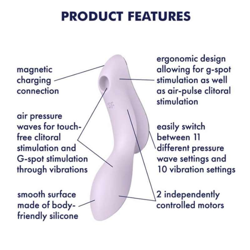 Gadżet Satisfyer Curvy Trinity 2 jest wykonany z silikonu i zapewnia niezwykle wszechstronne doznania dzięki 3 silniczkom i 2 oddzielnie sterowanym funkcjom, masując zarówno łechtaczkę, jak i punkt G za pomocą wibracji oraz fal ciśnienia.